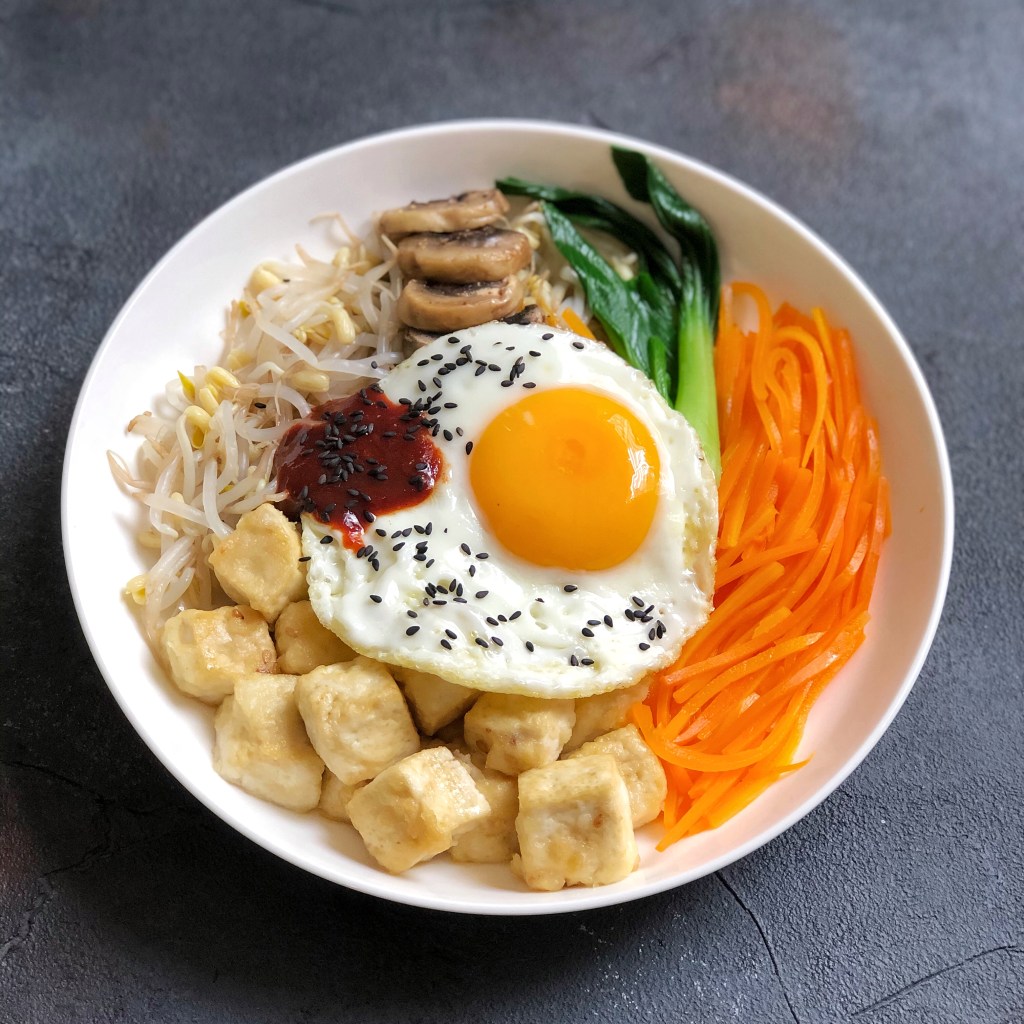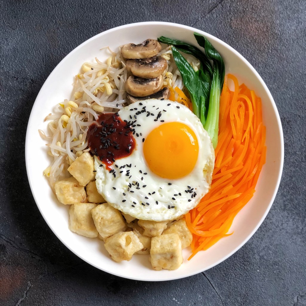 giá đỗ và cà rốt xắt sợi, luộc mềm. trong lúc đấy bạn cắt nấm mỡ thành từng lát và áp chảo với dầu olive luôn nghen. toàn bộ công thức tôi đều cố gắng dùng dầu olive thay dầu thường; cũng như thay bột mì thành bột yến mạch vậy.